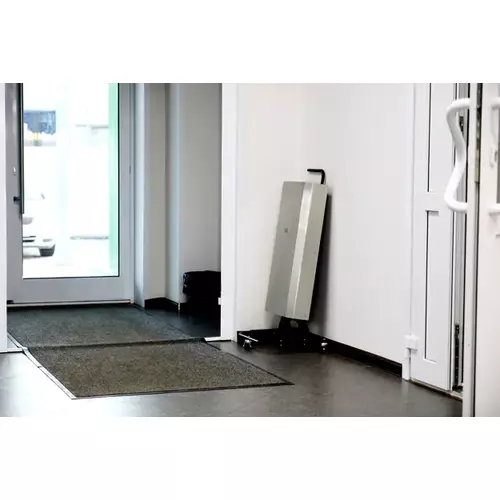 - Крепится на стене или передвигается с помощью дополнительной передвижной опоры на 3-х колесиках.